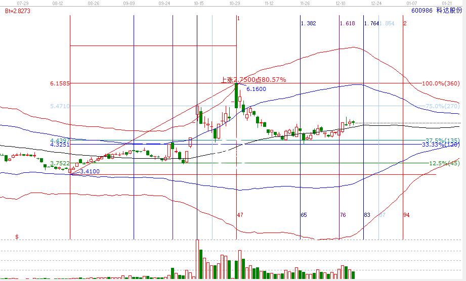 科達(dá)股份,在結(jié)束上漲行情回調(diào)至生命線,在生命線附近震蕩,中間有破位生命線,但又在百分比三分位支撐之上,碰上時間變盤點,就還是上漲。掌握價格波動規(guī)則,結(jié)合趨勢運用,能進(jìn)一步的提升操作成功率,減少止損次數(shù),即使市場有人挖坑,我們也能輕松跳過啦。