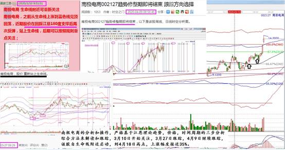 南極電商(002127):3月10日開始關(guān)注,3月27日跟蹤,4月9日跟蹤,該股自生命線附近啟動(dòng),到4月18日高點(diǎn),上漲幅度35%。下圖是跟蹤記錄和具體的分析。