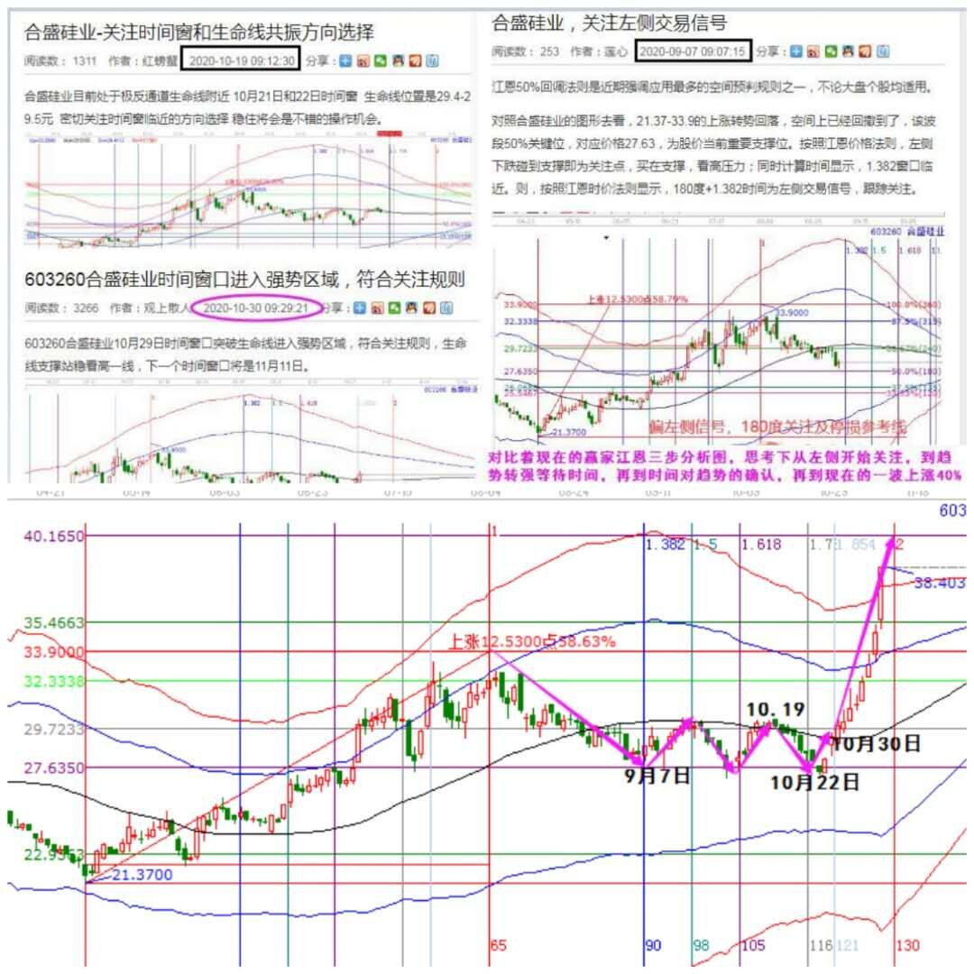 合盛硅業(yè),9月7日剛剛躍過時間就納入關(guān)注,10月19日上生命線,但需時間進一步確認;10月30日時間確認生命線后再次明確方向。有在認真關(guān)注贏家消息的你,這種股不會錯過。知其然更要知其所以然,沒賺到利潤,也要賺的技術(shù):對比著過去和現(xiàn)在的贏家江恩三步分析圖,思考下從左側(cè)開始關(guān)注,到趨勢轉(zhuǎn)強等待時間,再到時間對趨勢的確認,再到現(xiàn)在的一波上漲40%的漲幅??炊?,你就明白贏家江恩交易體系波段操作這么牛。在低位都不愿意看的時候,我們就開始關(guān)注,伴隨著信號確認,逐步配置好倉位,當主升開始的時候,就是安安心心吃肉,吃大肉。