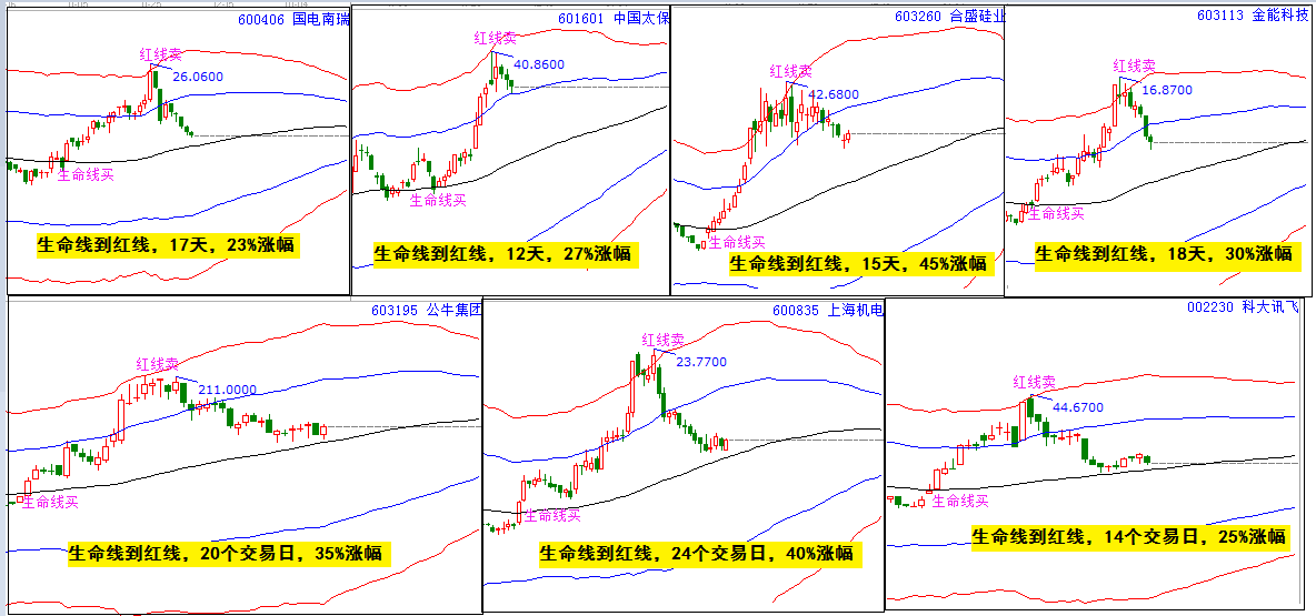 極反通道,作為贏家江恩經(jīng)典操盤神器!只有簡(jiǎn)單的5條線,掌握技巧和規(guī)則,就是高效實(shí)戰(zhàn)的盈利模型。生命線,是強(qiáng)勢(shì)股票的啟動(dòng)點(diǎn),買在生命線即是買在起漲點(diǎn);生命線站穩(wěn),先看藍(lán)色上軌線(1-2周,約15%漲幅);站上藍(lán)色上軌線,繼續(xù)看高紅色外軌線。自生命線至紅色外軌線,視為一個(gè)完整的波段盈利模型(1個(gè)月,25-40%漲幅)!