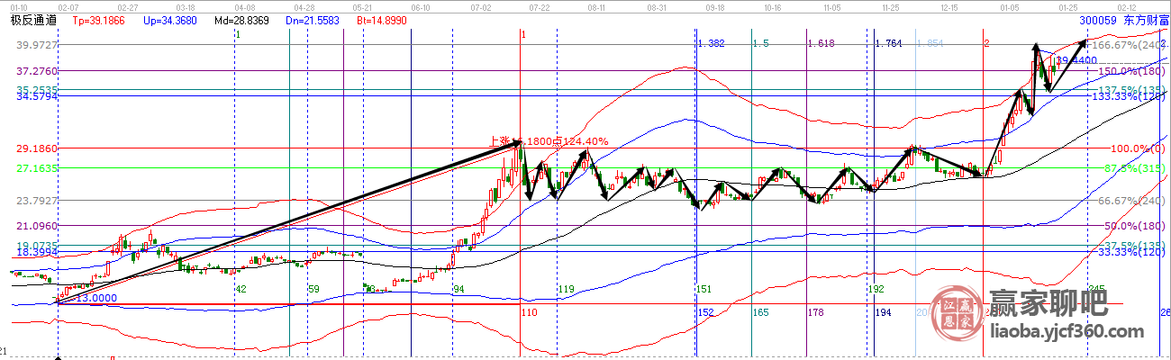 再來看看我們持續(xù)跟蹤2年之久的東方財(cái)富,你想要的轉(zhuǎn)勢信號(hào)。不管是中期波段還是短期波動(dòng),贏家江恩未來先知時(shí)價(jià)圖全部打盡。每一個(gè)箭頭,都是一段波段,都是一組低吸高拋,都是標(biāo)準(zhǔn)的買賣信號(hào),市場到底有多美,你不懂江恩的視角,永遠(yuǎn)也看不到。很多人會(huì)問,江恩技術(shù)準(zhǔn)不準(zhǔn)?看看東財(cái)?shù)膱D,已經(jīng)走出來的高低點(diǎn),有多少落到了江恩線上,那就有多準(zhǔn)。不是準(zhǔn)不準(zhǔn),而是當(dāng)你一旦捕捉到了個(gè)股的規(guī)律,準(zhǔn)的你不敢相信。這就是股市,這就是江恩時(shí)價(jià)技術(shù)的魅力,好圖只遇有心有緣之人,想深入學(xué)習(xí),聯(lián)系我吧!