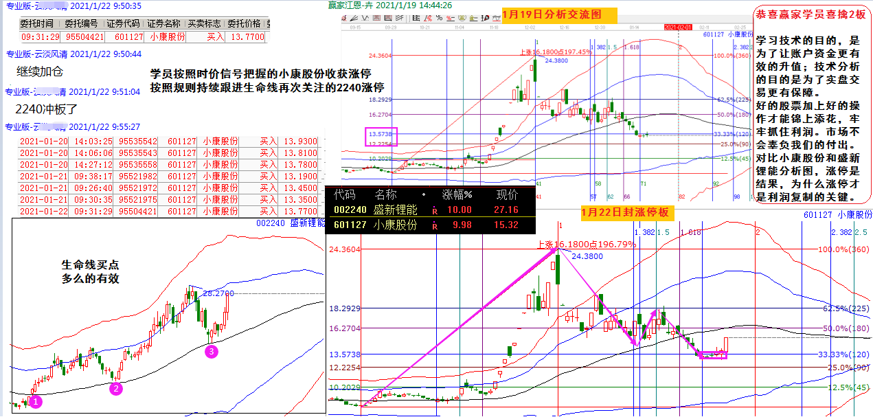 學(xué)習(xí)技術(shù)的目的,是為了讓賬戶更有效的升值;技術(shù)分析的目的是為了實(shí)盤交易更有保障。好的股票只有加上好的操作,才能錦上添花,牢牢抓住利潤。市場從來不會(huì)辜負(fù)我們的付出。對(duì)照小康股份和盛新鋰能的分析圖,時(shí)價(jià)信號(hào)擒獲小康漲停;2240生命線3次買點(diǎn)很標(biāo)準(zhǔn)!漲停是結(jié)果,知道為什么漲停,記下這個(gè)因子才是利潤復(fù)制的關(guān)鍵!你想要的是什么呢?