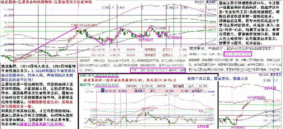 生命線買點學習應用之旗濱集團旗濱集團,1月14日納入關注,2月2日回落到生命線再次關注。2.382時間確認生命線再次給出低吸機會,同步入場,兩根陽線送來踏踏實實的春節(jié)紅包!江恩理論是一套預測機制,有效的預測才能更好的跟隨,才能規(guī)避人性,讓投資更如魚得水。旗濱集團本次生命線關注后,疊加30分鐘時價信號提前測算反彈空間,并提前委托待市場確認。對照圖形驗證比對:實際走勢與預期完全一致。知其然并知其所以然,才會有持續(xù)的利潤。贏家江恩所有分析全部留痕,有時間有圖形有依據(jù)有解讀,當你能靜下心來認真考察, 你定會明白贏家江恩體系的與眾不同!贏家江恩引領理性投資22年,專注散戶操盤盈利體系的構建。高端理論體系+專業(yè)軟件工具+系統(tǒng)培訓課程,幫助投資者快速掌握一套炒股技術。跟隨贏家江恩,在每天的實戰(zhàn)應用中學習江恩時價技術,從選股-買入-賣出-風控-心態(tài),精抓買賣細節(jié),尊重市場信號,提前做好預測分析,規(guī)避人性主動獲利!