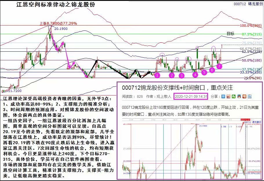 <江恩時間窗+生命線>選股應用之洛陽鉬業(yè)生命線是強勢股票的啟動點,買股買在生命線,穩(wěn)健又強勢;時間是決定市場走勢的關鍵因子。當江恩時間窗遇到生命線,視為極佳進場信號。對照洛陽牧業(yè)分析圖,先看粉色1-2-3,江恩時間窗口加生命線給出進場信號后,均如期展開一波上攻;再看黑色1、2,上攻到紅線遇阻后疊加時間窗展開快速回調(diào)。粉1到黑1,一波上漲;粉2到黑2,一波上漲;粉3呢?繼續(xù)踩著生命線展開上攻,逼近第一目標藍線,問:黑3在哪呢?洛陽鉬業(yè)12月15日按照時價法則選出、2月1日提前選出,2月8日強調(diào)時間窗抵達生命線,連續(xù)4日上攻今日封板,漲幅達25%!