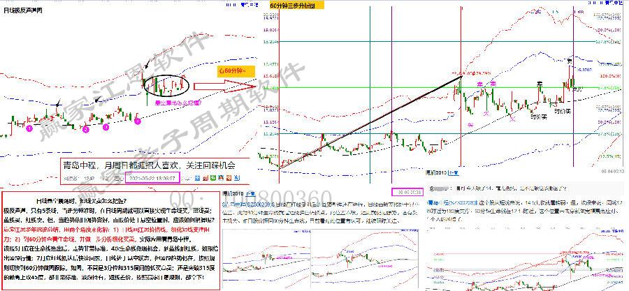 極反通道,只有5條線,當(dāng)走勢標(biāo)準(zhǔn)時,在日線周期就可以直接實現(xiàn)生命線買,藍(lán)線賣;藍(lán)線買,紅線賣。但,當(dāng)趨勢依舊強(qiáng)勢完好,而股價處于懸空位置時,應(yīng)該如何把握呢?贏家江恩多年沉淀總結(jié),用兩個角度來化解:1)日線畫江恩價格線,細(xì)化短線支撐阻力;2)到60分鐘查看生命線,并做三步分析細(xì)化買賣。實際應(yīng)用看青島中程。