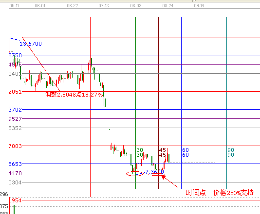 一:時(shí)間:(自定義周天江恩時(shí)間循環(huán)線)8月16號(hào)是江恩時(shí)間循環(huán)線的第45天的時(shí)間變盤(pán)點(diǎn),(使用,只需取一個(gè)點(diǎn)就ok了,取點(diǎn)2012年7月3日為起點(diǎn))