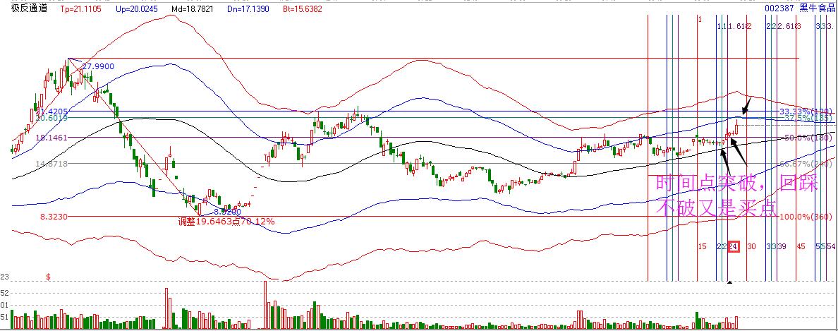 ? 上證指數(shù)經(jīng)過一波上漲,近期一直處于極反通道藍(lán)色線附近,并在此位置震蕩盤整,個(gè)股操作相對有些難度,因此,贏家建議投資者以極反通道生命線附近的股票為操作重點(diǎn),并結(jié)合價(jià)格,時(shí)間工具來精確的把握買賣。接下來,筆者為大家解析近期所操作的黑牛食品,短期的高獲利讓我們再一次不得不認(rèn)真對待生命線附近的強(qiáng)勢股。