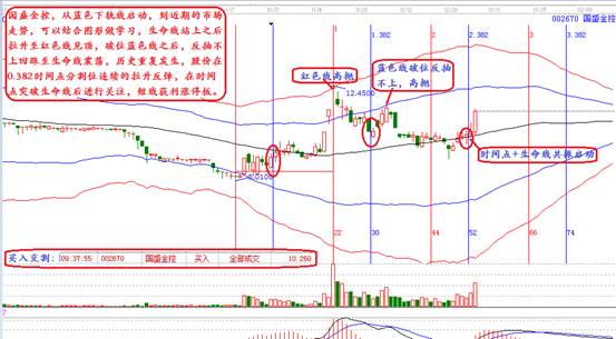 國(guó)盛金控,從藍(lán)色下軌線(xiàn)啟動(dòng),到近期的市場(chǎng)走勢(shì),可以結(jié)合圖形做學(xué)習(xí),生命線(xiàn)站上之后拉升至紅色線(xiàn)見(jiàn)頂,破位藍(lán)色線(xiàn)之后,反抽不上回踩至生命線(xiàn)震蕩,歷史重復(fù)發(fā)生,股價(jià)在0.382時(shí)間點(diǎn)分割位連續(xù)的拉升反彈,在時(shí)間點(diǎn)突破生命線(xiàn)后進(jìn)行關(guān)注,短線(xiàn)獲利漲停板。