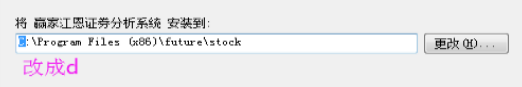 答:安裝路徑盡量選擇D盤等其他硬盤,只修改安裝目錄前面的字母C就可以,如:D:\Program Files \future\stock如電腦只有一個(gè)C盤,即可默認(rèn)安裝。