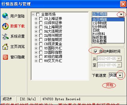 1)單擊你要下載的行情品種前面的四方框,會有對勾出現(xiàn);