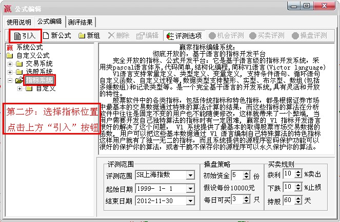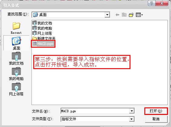 贏家江恩炒股軟件中指標(biāo)公式導(dǎo)入方法分為三步:第一步是打開公式管理、第二步選擇指標(biāo)位置點(diǎn)擊上方引入按鈕、第三步是找到需要導(dǎo)入指標(biāo)文件的位置,點(diǎn)擊打開按鈕,導(dǎo)入成功。相應(yīng)的圖形展示如下: