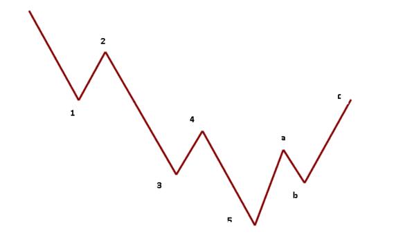 例如標(biāo)準(zhǔn)下跌,包括五浪的下跌(五段行情)就是一個完整下跌。上圖從A到F就是一個完整的五浪下跌示意圖。