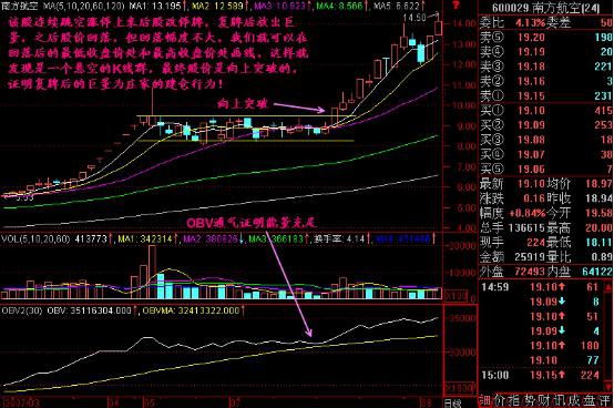 特別提醒如果是某種基本面變化原因?qū)е碌耐E?,一旦?fù)牌后出現(xiàn)巨量跳空K線的,一般都是主力的原因,有的時(shí)候是主力乘混亂建倉(cāng),而有的時(shí)候是主力借機(jī)出貨。這樣我們可以通過OBV能量潮來輔助判斷一下,再把跳空后的股價(jià)高低收盤價(jià)框起來,形成一個(gè)懸空K線群,觀察股價(jià)是向哪個(gè)方向突破,也就知道主力在干什么了,只要主力突破的方向是向上,我們就基本可以跟進(jìn)了!