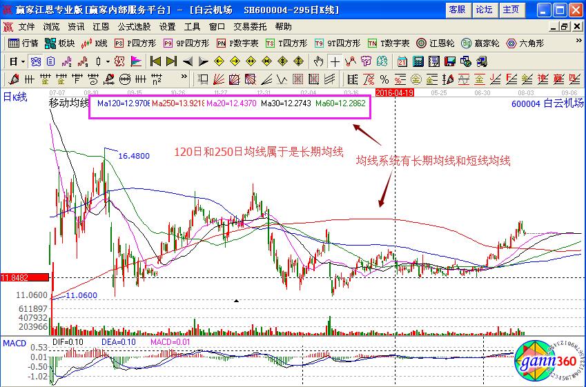 咨詢:13333833889在均線系統(tǒng)中,有季線系統(tǒng)和線系統(tǒng)兩種。其中季線系統(tǒng)有60日、40日、 20日均線,主要用來反映中長期走勢(shì)。而月線系統(tǒng)有30日、10日、5日均線,主要用來反映個(gè)股的中短期的走勢(shì)。而要用30日均線來作為月線系統(tǒng)的基線,原因是國內(nèi)股市當(dāng)中的中級(jí)行情都是以30個(gè)交易日為明顯的周期,30日均線則要能更好的反映個(gè)股的中短期走勢(shì)。