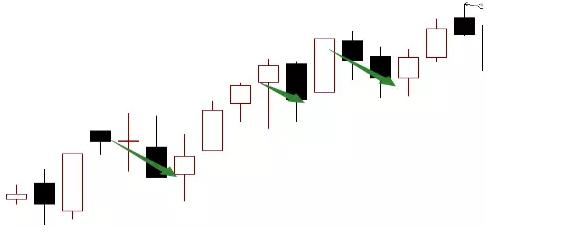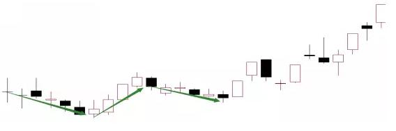 第二種途中洗盤。由于主力機構(gòu)手上籌碼不足但資金非常雄厚,所以不愿意在洗盤環(huán)節(jié)上浪費時間,所以選擇邊拉升邊打壓的方式。主力每天采取盤中大幅振蕩的方式嚇出膽小投資者,陰陽相間的K線組合形態(tài),高效洗盤的同時還能持續(xù)推高股價。