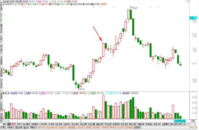 3、研判主力意圖,上山型的山腰間大陽線說明主力要繼續(xù)做多,下山型的山腰間大陽線表明主力要借機(jī)出貨;
