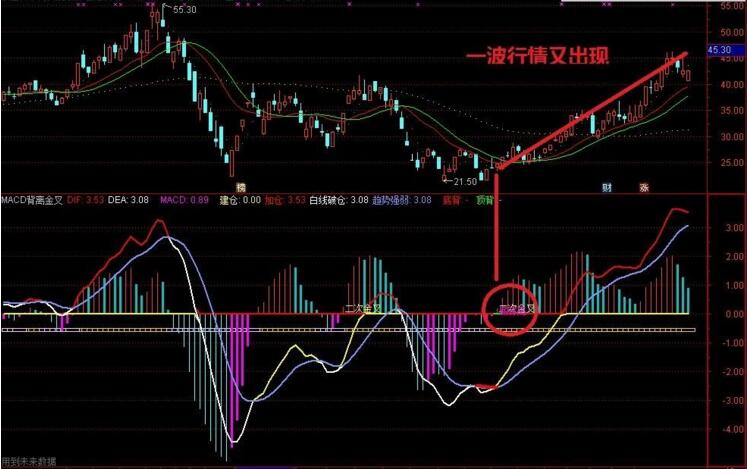 DRAWTEXT(二次金叉,0.2, 二次金叉),COLORYELLOW;
