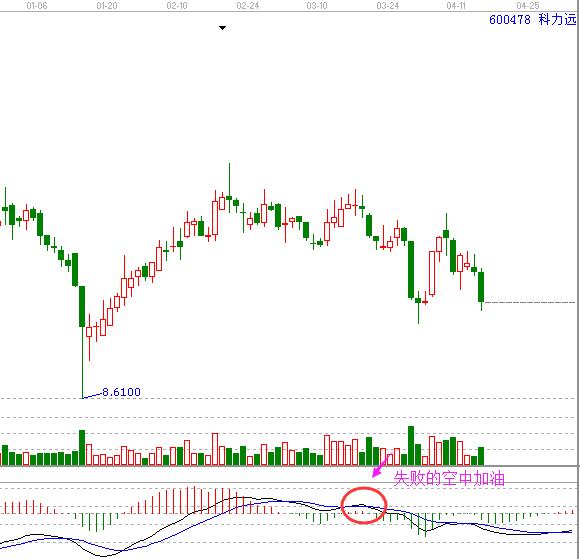 這種走勢的空中加油走勢暗藏殺機(jī),紅柱的跟快速移動平均線背離比較大,此時金叉沒有形成那就趕快離場和不要考慮這種走勢的股票。