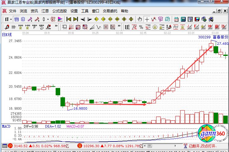 外在條件對股票的影響主要表現(xiàn)在資金上了,所有的資本市場、證券市場,其實都是資金推動型的市場。沒有錢股價漲不懂,有的時間一個小的波段也很容易是自己推動起來的行情。資金的推動越大,且行情就越加的明顯。那么我們今天就找一只股票來看看,比如說,富春股份。