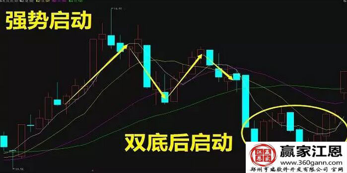 超強啟動指的就是向上拉升動作迅猛,伴有連續(xù)性跳空缺口股價短期大幅上漲(如上圖),而強勢啟動是股價向下破位和向上拉升迅速,一般也是有缺口的,但是在拉升之前一般以橫盤、雙底、圓底呈現(xiàn)(如下圖)。