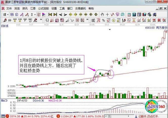 從上面的理論依據(jù)中,我們可以總結出股票走勢中的彩虹橋技術要點如下:
