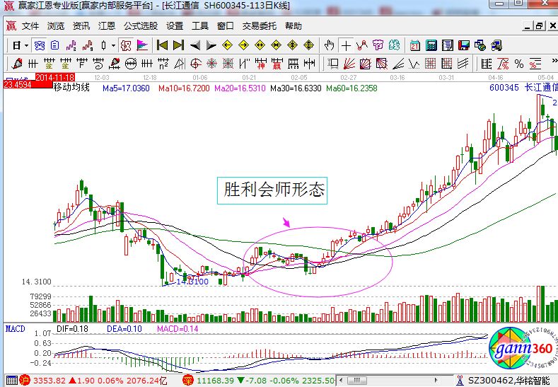 在長江通信的走勢中就形成了典型的勝利會師形態(tài),該形態(tài)說明了市場上由空方強(qiáng)勢逐漸的變成多空雙方僵持,最終一旦多頭排列完成,那就說明了市場進(jìn)入多方強(qiáng)勢行情,未來價格將持續(xù)的上漲。