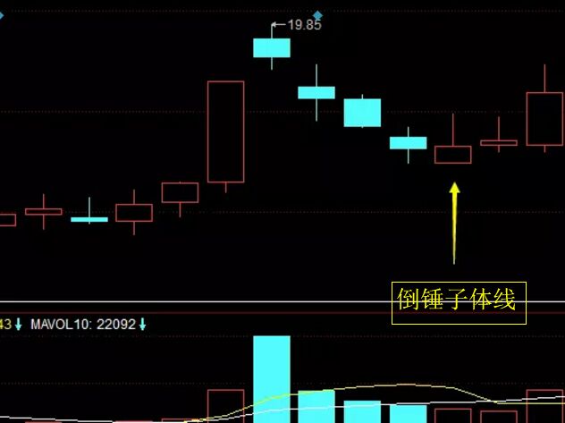 運(yùn)用倒錘線形態(tài)選股其實(shí)就是運(yùn)用它的一種走勢(shì),即倒錘子體反轉(zhuǎn),這個(gè)走勢(shì)形態(tài)可以幫助我呢選擇到短線買(mǎi)點(diǎn)的。那究竟倒錘子體反轉(zhuǎn)指的是什么呢?它其實(shí)一般是出現(xiàn)在下跌趨勢(shì)的末端,當(dāng)然有時(shí)也是回調(diào)下跌的末端,是一根實(shí)體非常短小而且?guī)в虚L(zhǎng)上影線的K線,它是一種反轉(zhuǎn)信號(hào),如下圖所示。