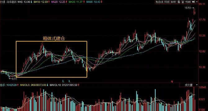 在成交量上,一般表現(xiàn)為股價上漲時成交量放大,而股價回落時成交量萎縮,如若某只股票在箱體內(nèi)上下震蕩的次數(shù)越多,周期越短,則證明其是莊股的可能性就越高。有時候在波動的過程中,成交量突然放大或單筆成交量異常放大,都是莊家主動買入的跡象。莊家用這種方式建倉,往往可以把自己的建倉成本控制在一個特定的區(qū)間內(nèi)。例如下面的風(fēng)華高科的走勢圖。