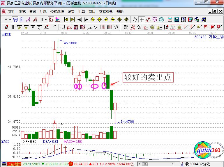 觀察近期走勢(shì)的話,我們可以看到萬(wàn)孚生物的走勢(shì)中,就出現(xiàn)了一根長(zhǎng)陰線跌破近期震蕩區(qū)間的走勢(shì)。如下圖所示,在8月3日的時(shí)候,股價(jià)就跌破了震蕩區(qū)間的下沿。