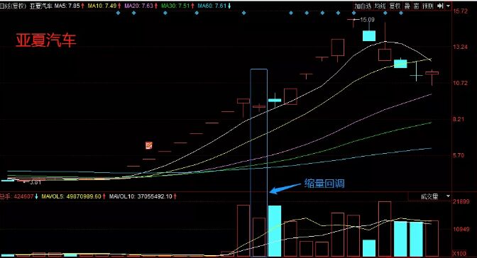 上圖是亞夏汽車的歷史走勢(shì)圖,這只股票在當(dāng)時(shí)是重組概念股,公司是中國汽車服務(wù)僅有的量價(jià)IPO上市企業(yè)之一,消息面上,公司擬作價(jià)185億置入中公教育的利好消息一出,這只股票便開始了一字飆升,在8連板之后出現(xiàn)縮量回調(diào),其實(shí)在縮量回調(diào)時(shí)介入是最好的時(shí)機(jī),縮量回調(diào)的次日便收得一個(gè)假陰線。