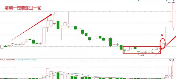 上圖是日出東方的部分截圖,從圖中我們可以看到該股出現(xiàn)了一輪上漲式的行情,并且漲幅在20個(gè)點(diǎn)左右,當(dāng)大陽(yáng)線出來后,指數(shù)再次拉升之后肯定會(huì)有很多跟風(fēng)盤,我們看到主力再創(chuàng)出近期新高之后以非??焖俚姆绞酱蠓盏烷_,隨后就開始一系列宰殺行為,不斷的有跳空小陰線形成明顯的挖坑行情,隨著一連串小碎陽(yáng)的出現(xiàn)走出了一個(gè)箱體運(yùn)行,同時(shí)下方的量能是出現(xiàn)了近期的地量行情,隨著A點(diǎn)的有效突破箱體上沿,同時(shí)下方出現(xiàn)了小倍陽(yáng)的量能增加走勢(shì),因此這個(gè)突破點(diǎn)A就是我們進(jìn)場(chǎng)的好時(shí)機(jī),可以享受到后期拉漲的快感。