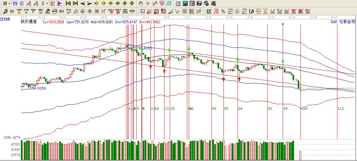 目前黃金處于平方時(shí)間10*10=100重要拐點(diǎn),這個(gè)拐點(diǎn)黃金剛剛經(jīng)歷了一波快速殺跌,這里殺跌的的位置剛好是極反通道藍(lán)色下軌的位置,這就構(gòu)成了極反通道跟時(shí)間共振的一個(gè)拐點(diǎn)。只要極反通道藍(lán)色下軌的位置1554.76不破,短期逢低做多為主。。。