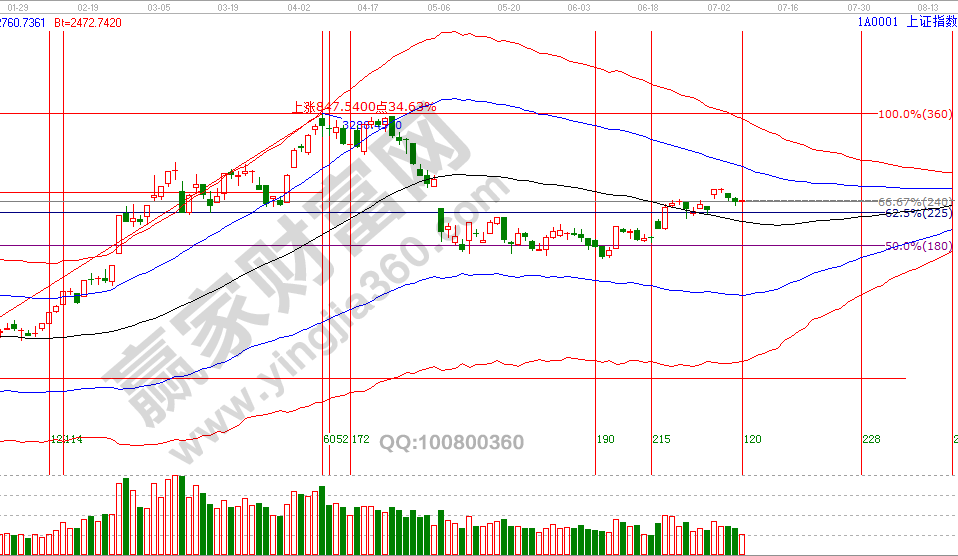 了解如何判斷未來的市場(chǎng)運(yùn)行,最快的方法就是研究歷史。2號(hào)依據(jù)贏家江恩系統(tǒng)工具所提出的周期共振警示信號(hào),并給出回探期具有參考價(jià)值的位置是60分鐘生命線,經(jīng)過3天時(shí)間市場(chǎng)再一次驗(yàn)證了極反通道周期推導(dǎo)的實(shí)戰(zhàn)性,此方法應(yīng)用在學(xué)員區(qū)有過講解。指數(shù)觸及至短期關(guān)鍵位后出現(xiàn)止跌,強(qiáng)度不佳,但午盤點(diǎn)評(píng)中談到輕倉(cāng)或空倉(cāng)者午盤可以試探性參與,一切遵守方法信號(hào)、用紀(jì)律規(guī)則交易,這是同普通散戶巨大差別。本周參考位支撐是2944、2978點(diǎn),壓力是3051、3074點(diǎn),7月8號(hào)盤中壓力是45度3016點(diǎn)、90度3036點(diǎn),盤中支撐是315度2978點(diǎn),10號(hào)為土星沖日。操作策略,指數(shù)極反通道生命線上安全區(qū)域震蕩上攻,反彈動(dòng)作還未結(jié)束,今日博弈籌碼以短期關(guān)鍵位做決策,整體持倉(cāng)保持3-5成。