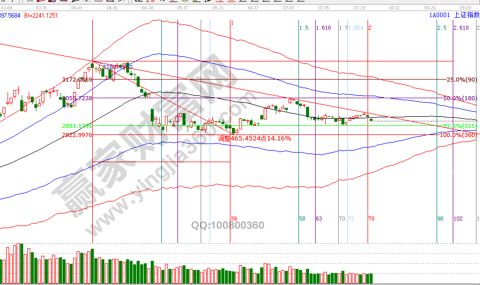2966是近期一直強(qiáng)調(diào)的反彈重要阻力位,30號上攻到2965.6(精準(zhǔn)無誤差)后如期受阻回落,再次彰顯江恩對價格點位的精準(zhǔn)計算。按照規(guī)則壓力位下逢高兌現(xiàn)不開新倉,等待8月1日時間窗口。1號時間窗,指數(shù)失收生命線,趨勢再度轉(zhuǎn)弱。8月2號盤中壓力是135度2911點、180度2928點,盤中支撐是90度2894點、45度2877點。操作策略,指數(shù)失守日線生命線,失守60分鐘生命線,穩(wěn)健者繼續(xù)休息,等待新的交易信號出現(xiàn)。整體倉位控制在3成內(nèi)。