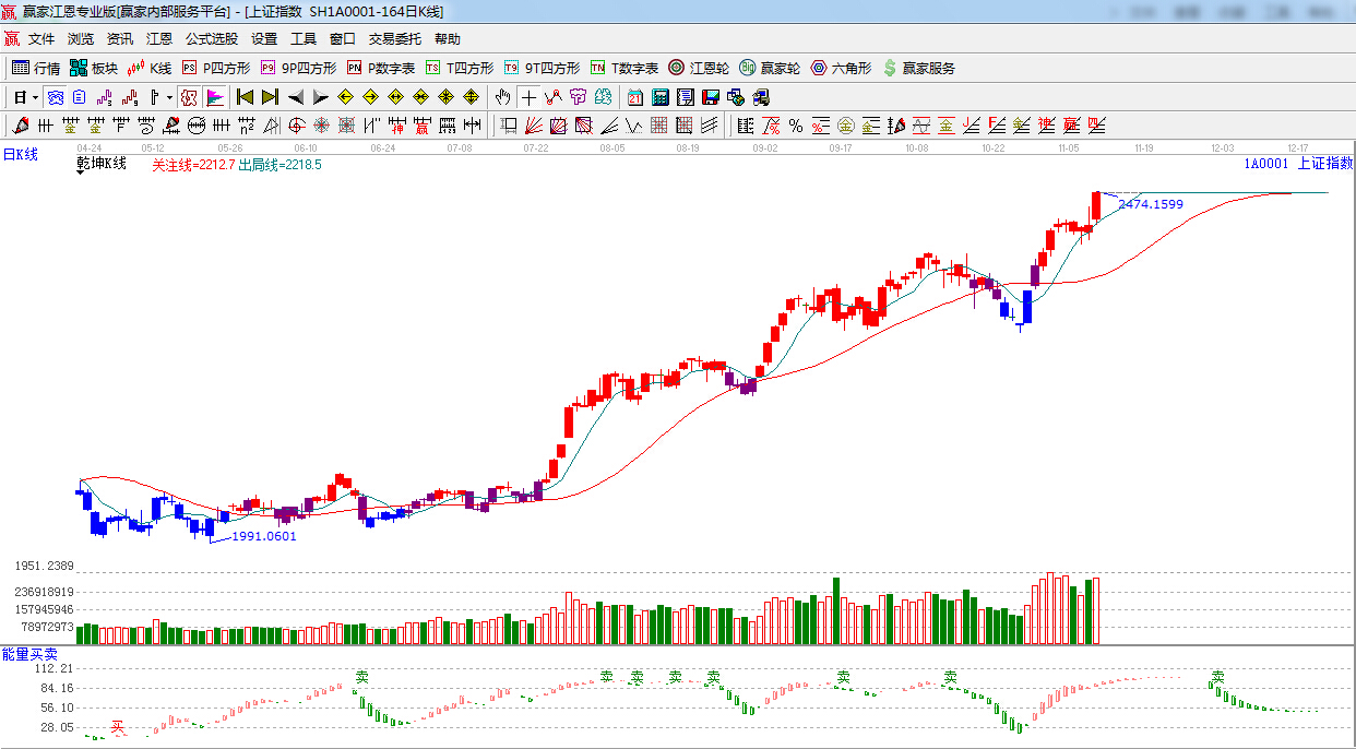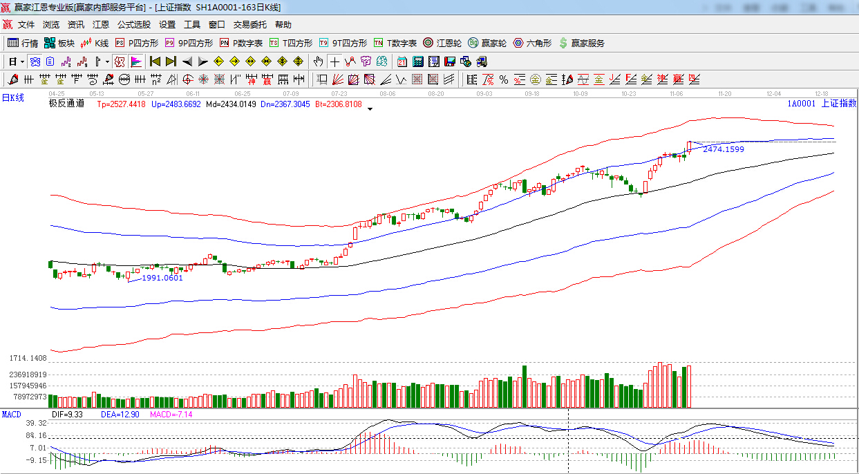 江恩看盤綜述:依據(jù)贏家江恩技術工具分析得出:受利好消息影響,兩市大幅高開,隨后一路強勢拉升,創(chuàng)業(yè)板小幅回落,周二需關注上方即將面臨的江恩180度2480點-2489點阻力,預計周二大盤維持高位震蕩的走勢。