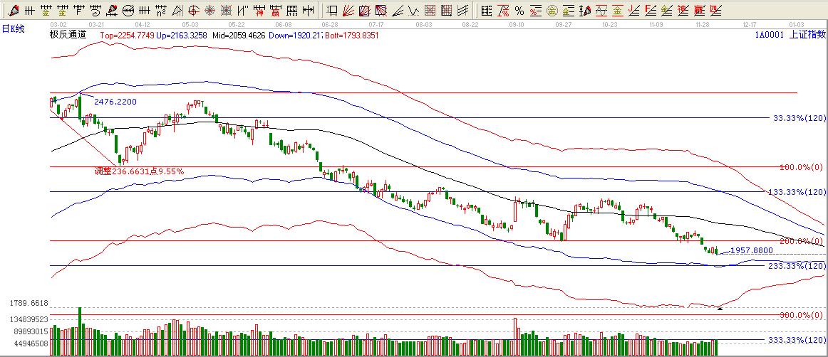 ☆依據(jù)贏家江恩系統(tǒng)極反通道提示:極反通道下軌位置1920點,較上一交易日再一次下跌4點。極反通道生命線下方,多看少做為主。