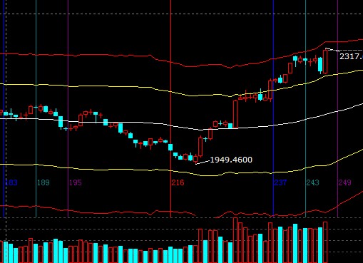 大盤(pán)在預(yù)期的60分鐘生命線多周期共振位置展開(kāi)猛烈上漲態(tài)勢(shì),“欲使之滅亡,必先使之瘋狂”詮釋了目前行情所處階段,短周期強(qiáng)勢(shì)外軌與日線紅色超強(qiáng)外軌區(qū)間為2320-2337,此空間保持謹(jǐn)慎做多,依據(jù)規(guī)則所持倉(cāng)位應(yīng)不斷提升止損位保護(hù)收益,短期支撐2288-2295,外軌線阻力2320-2337;