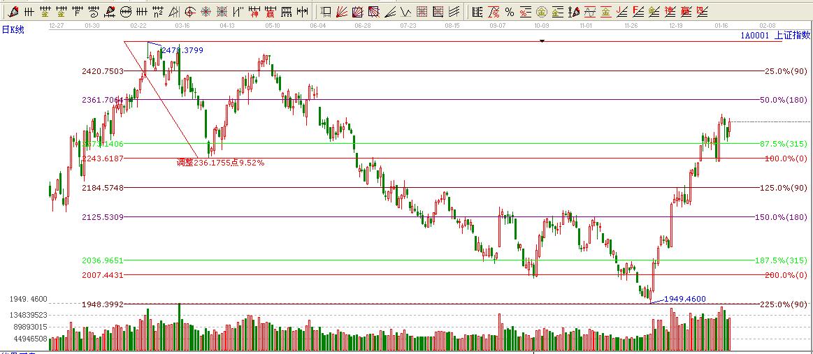 ★依據(jù)贏家波段百分比伸線提示:大盤依然在315度2270上方運(yùn)行,下一位置就是其180度位置壓力2360附近了。315度位置不破看多。