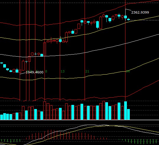 大盤在反彈的34天創(chuàng)新高出現(xiàn)回落,極反通道黃色外軌線為當(dāng)前重要支撐,依據(jù)規(guī)則失守一線看低一線,結(jié)合MACD、周期都投資者提升止損位保護收益或倉位上做高拋低吸,整體趨勢分析日線或更短周期的調(diào)整是良性的,不破生命線不必擔(dān)心大盤風(fēng)險,短期支撐2283-2270,阻力2302-2311;