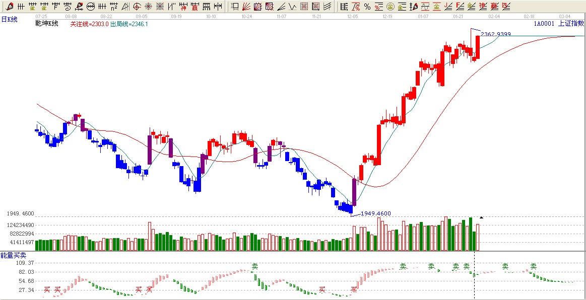 ★依據(jù)贏家江恩系統(tǒng)能量買賣提示:能量買賣多空臨界點,再一次變紅看多。