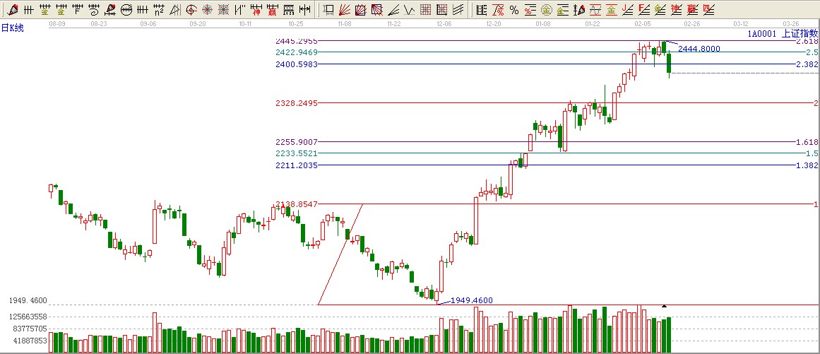 ☆依據(jù)贏家黃金價格延伸線提示:大盤失手黃金分割2.382的位置2400,這里構(gòu)成短期壓力,跌破一線看低一線至2倍位置2328點附近
