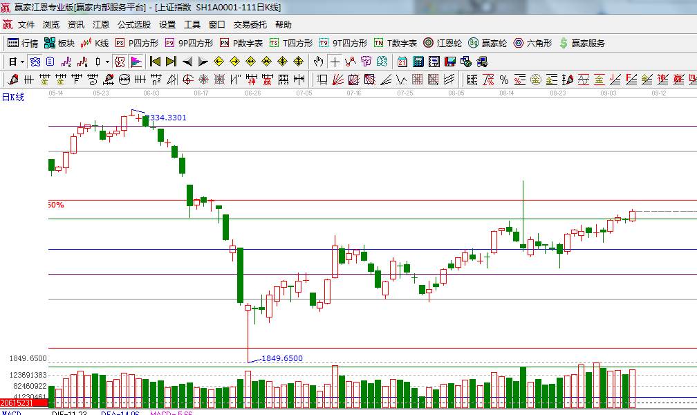 ☆依據(jù)贏家江恩系統(tǒng)波段百分比延伸提示:本周最大的拋壓指向是前期5月份市場反攻的底部,上攻的路程將更加曲折;(2)