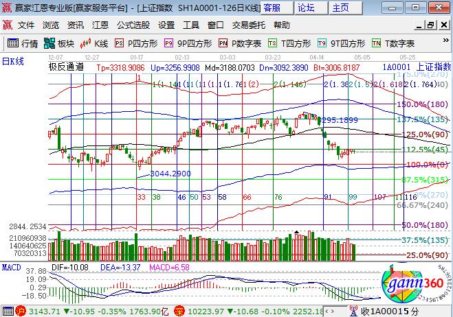 周二大盤低開弱勢(shì)震蕩小跌0.35%,除創(chuàng)業(yè)板幾大指數(shù)全天候處于綠盤運(yùn)行。板塊方面,環(huán)保、家電、煤炭漲幅居前,石油、券商、銀行權(quán)重領(lǐng)跌;題材方面,雄安概念持續(xù)領(lǐng)漲,一帶一路局部表現(xiàn),黃金、油改和次新領(lǐng)跌,個(gè)股漲跌互相成交量繼續(xù)萎縮。技術(shù)方面,短周期15、30分鐘收盤在極反通道生命線位置,是否引導(dǎo)60分鐘上攻生命線需要市場(chǎng)熱點(diǎn)的持續(xù)發(fā)酵,日線昨日最高點(diǎn)受到江恩百分比線45度制約,整體判斷市場(chǎng)繼續(xù)在45度為中軸,零度和90度為箱體下沿和上沿區(qū)間震蕩,倉(cāng)位保持在5成左右,3成為波段,2成為短線,3128、3116為日內(nèi)支撐,3164、3170為日內(nèi)阻力,僅供參考,不構(gòu)成任何投資建議。