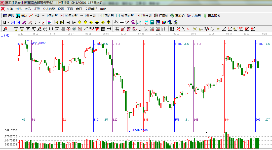 咨詢:13333833889指數(shù)進(jìn)入黃金分割時(shí)間窗0.382變盤日,空間方面極反通道外軌線是拋壓區(qū),江恩理論所談到的時(shí)價(jià)共振,市場方向選擇再一次確認(rèn)了判斷方法的有效性,未來一段時(shí)間市場將震蕩下探調(diào)整目標(biāo)為暫定為極反通道生命線位置,時(shí)間周期方面為0.5的位置22號附近,操作思路上前兩天的分析中已提高做好倉位上的調(diào)控,等待市場確認(rèn)安全信號后操作;調(diào)整期間觀察板塊與個(gè)股狀態(tài)為后期操作做準(zhǔn)備;