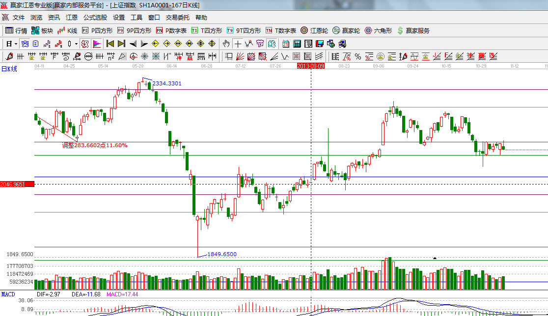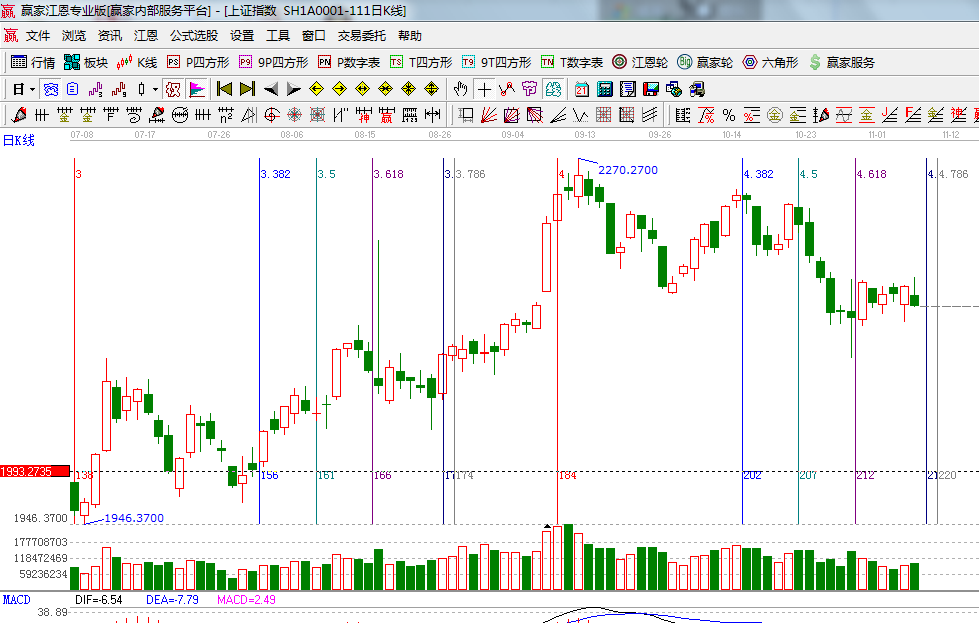 ☆依據贏家江恩系統(tǒng)能量買賣提示:多空轉換節(jié)點位置,等待信號的確認;
