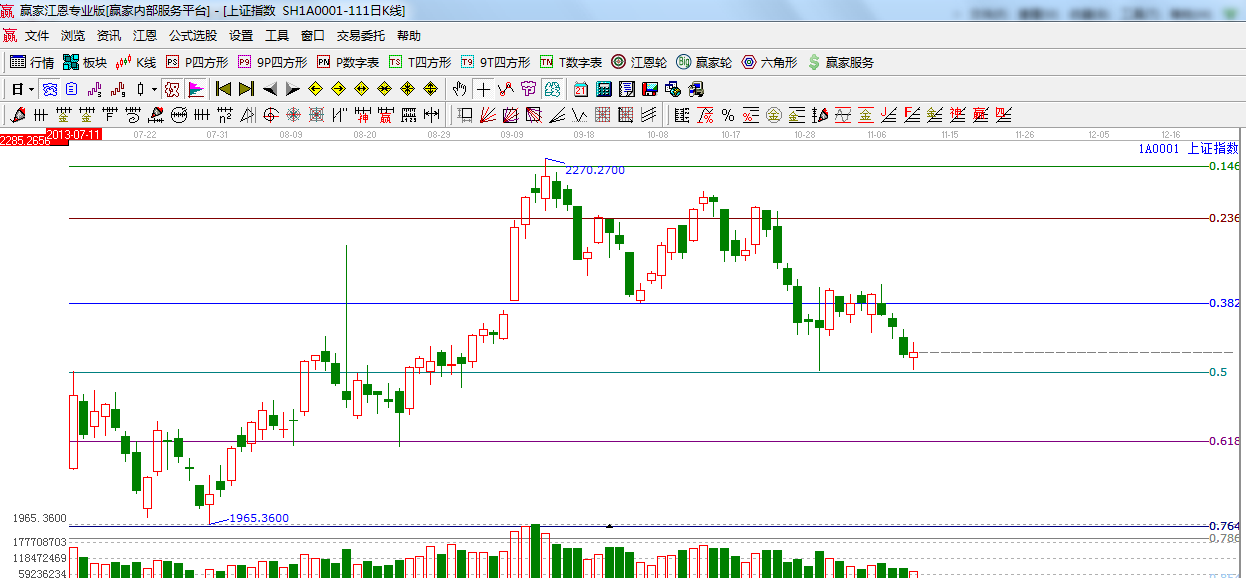 ★依據(jù)贏家江恩系統(tǒng)波段百分比延伸提示:黃金分割價(jià)格圖0.5位置是2090,0.618位置是2035;