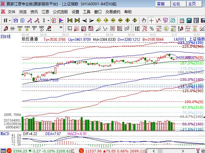 咨詢:13333833889滬指周四低開沖高回落震蕩小跌,尾盤回落失守3400點(diǎn),全天大部分時(shí)間處于綠盤態(tài)勢(shì),深市幾大指數(shù)均小漲。板塊方面,保險(xiǎn)、釀酒、農(nóng)業(yè)、食品和醫(yī)藥板塊領(lǐng)漲,券商、煤炭、有爭(zhēng)和銀行等領(lǐng)跌;題材方面,維生素、豬肉、人工智能和生物疫苗股等局部表現(xiàn),次新、燃料電池、高鐵和雄安概念等跌幅居前,個(gè)股下跌居多成交量持續(xù)萎縮。技術(shù)方面,滬指60分鐘收盤失守生命線,15、30分鐘處于生命線與弱勢(shì)外軌線懸空可上可下位置,當(dāng)前短期15分鐘的走勢(shì)尤為重要,日線生命線是3382點(diǎn),更確切的說江恩百分比315度3370點(diǎn)自10月以來對(duì)行情的走勢(shì)更為有參考性,前期分析中談到,3370點(diǎn)自10份以來多次回踩但每次收盤能站在上方,依據(jù)工具規(guī)則,短線的強(qiáng)勢(shì)以60分鐘生命線為參考線,波段以日線生命線做參考線,中長(zhǎng)期則是周線的生命線為參考線。創(chuàng)業(yè)板指圍繞生命線震蕩,下周是周線時(shí)間窗,并且日、周生命線都在1890附近,重點(diǎn)觀察滬指生命線、創(chuàng)業(yè)板指生命線得失。日線生命線不破波段倉(cāng)保持在5成,短線保持2成,3389、3382為日內(nèi)支撐,3412、3416為日內(nèi)壓力。僅供參考,不構(gòu)成任何投資建議。