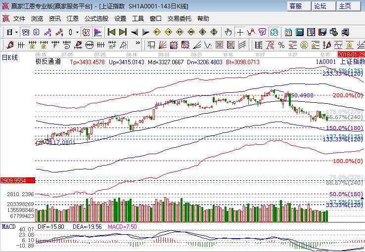 上周五滬指低開低走延續(xù)跌勢下跌0.8%,權(quán)重、周期股、白馬為砸盤主力,創(chuàng)業(yè)板指跌幅較小。板塊方面,僅保險微跌,鋼鐵、建材、釀酒、家電、地產(chǎn)、煤炭、銀行等權(quán)塊領(lǐng)跌;題材方面新零售、雄安、免疫治療和黃金概念局部表現(xiàn),開板新股、維生素、OLED、5G和芯片領(lǐng)跌;個股跌多漲少成交量持續(xù)放大。技術(shù)方面,上證50收盤失守生命線,市場如順勢下探至江恩百分比、60天均線(2895點)處則短線機(jī)會出現(xiàn),如圍繞生命線橫盤則變成賣點后續(xù)還有下探。滬指周線生命線和日線江恩百分比180度位置在3234附近,本周關(guān)注好此區(qū)域。16號系統(tǒng)工具用戶群培訓(xùn)講到修整調(diào)整時間(短線機(jī)會在破新低,波機(jī)會在18年2、3月份),空間方面(短線為3230附近,波段為120度和135度對應(yīng)的3160附近),操作策略中長線標(biāo)的4成倉持股,短線等待到達(dá)180度百分比后盤中做決策,3249、3234為日內(nèi)支撐,3275、3283為日內(nèi)壓力。僅供參考,不構(gòu)成任何投資建議。