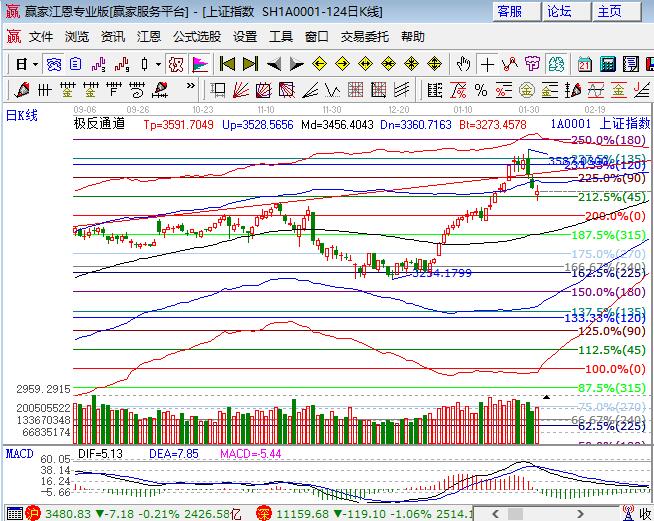 周三滬指低開震蕩延續(xù)跌勢,權(quán)重股拉抬上證50大漲,深市幾大指數(shù)跌幅均超過1%,創(chuàng)業(yè)板走勢超出預(yù)期跌破1780點大跌2.66%。板塊方面,釀酒、保險、銀行、家電、食品和地產(chǎn)領(lǐng)漲,權(quán)重僅石油、券商大跌;題材幾乎全部淪陷,服裝和年報幾只標的有表現(xiàn),海南本地、次新、軟件、區(qū)塊鏈、人工智能領(lǐng)跌,個股普跌,跌近家數(shù)近140家,成交量較前日略微放大。技術(shù)方面,滬指日線收盤在江恩百分比45度3466點,短周期60分鐘到達預(yù)期的極反通道生命線并展開震蕩,經(jīng)過三天的快速調(diào)整調(diào)有望在短周期的帶動下對日線外軌線進行反抽確認,創(chuàng)業(yè)板從圖形上看將再次考驗1700點位置,1800-1840區(qū)間不能收復(fù)不敢輕易的重倉做多創(chuàng)業(yè)板,也就是說創(chuàng)業(yè)板全面走好的預(yù)期不能達成。熊市也有反彈,牛勢也將有調(diào)整,跟隨主線,倉位中長線4成倉持股不動,3466、3450為日內(nèi)支撐,3493、3503為日內(nèi)壓力。僅供參考,不構(gòu)成任何投資建議。