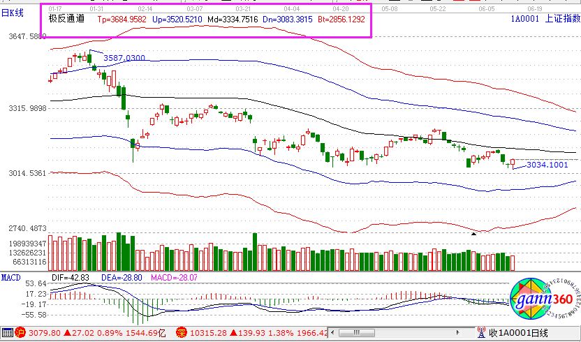 滬指漲0.91%,報收3080點;深成指漲1.38%,報收10315點;創(chuàng)業(yè)板漲1.43%,報收1712點。盤面上看,機場航運、白酒、食品飲料、環(huán)保工程、乳業(yè)、在線旅游、煤炭等板塊上漲,黃金、次新股、CDR概念、體育、有色等板塊下跌。全天,滬股通凈流入11億元,深股通凈流入16億元。相應(yīng)的極反通道指標(biāo)的支撐壓力提示,如下圖所示: